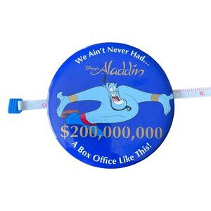 This 1990's Disney Aladdin pinback button is a collector's dream. Valued at $200,000,000 and measuring 4 inches, it's a piece of Disney history.