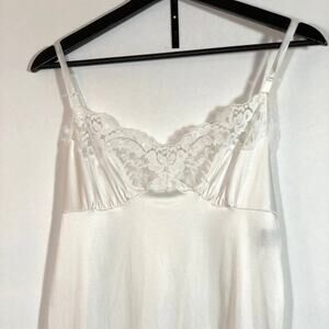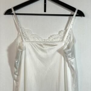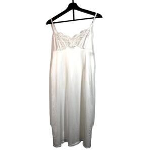 1990s White Nylon Lace Trimmed Slip Dress by Vassarette Lingerie Vintage