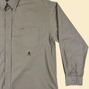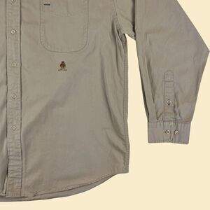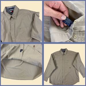 1990s XL Tommy Hilfiger shirt, vintage beige mens button down top
