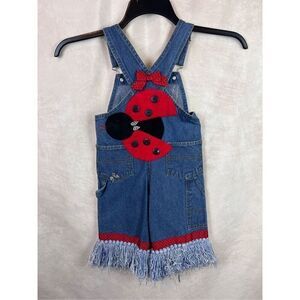 1990s Y2K Vintage Denim Ladybug Overalls Size 3T