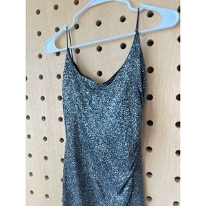 1990s asymmetrical glitter dress with rush side, then black straps, straps have been adjusted or altered, can remove stitching to add length to straps