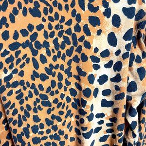 Vintage 1990s t-shirt tunic by Tapemeasure Plus. Slight stretch to the fabric. Round neck, fully cut 3/4 sleeves. Side vents at hem. Made in USA.