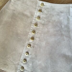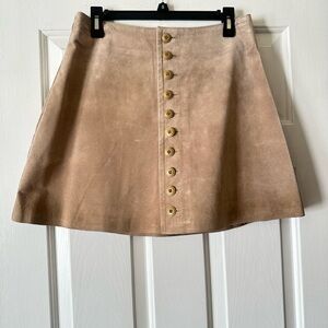 Vintage 1990s Express tan 100% real suede button-up mini skirt. #suedeskirt