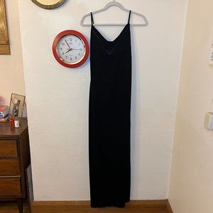 1990s/2000s Ann Taylor Loft Black Velvet Cowl Neck Satin Strapped Evening Gown