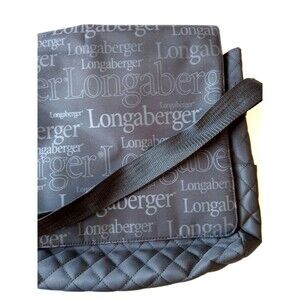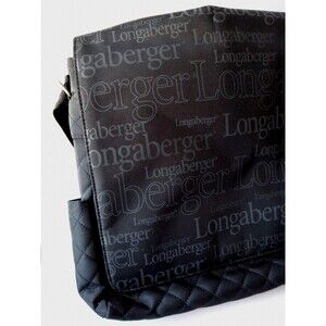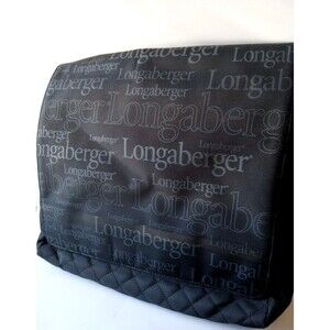 1990s-2000s Longaberger Black Logo Quilted Laptop Messenger Bag Adj Strap EUC