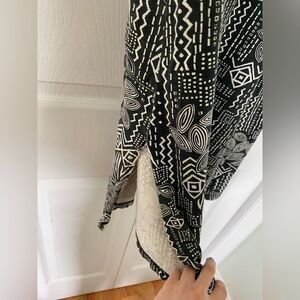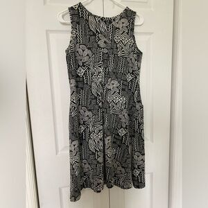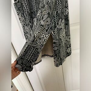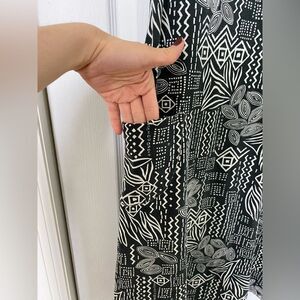 This fun and funky 90s Coral Bay dress will definitely give you “Do the Right Thing” film vibes. It is made of what feels like cotton. It has two side slits and a small ruching in the back. It has frayed a little around the neckline and there are some faint stains as pictured but otherwise in great condition.