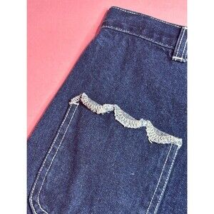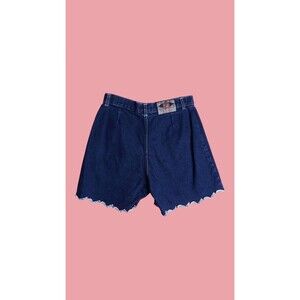 1990s-Y2K Crissa Quality Fashion Urban Chic dark wash ruffle denim jean shorts.
