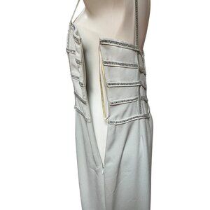 1990s/Y2K Vintage Maxi Dress Caged Silver Beaded Evening Gown Glamorous Cocktail