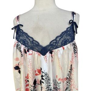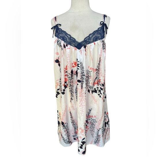 1990s/Y2k Oscar de la Renta Floral V-Neck Lace Trim Babydoll Nightgown/Slip Dres