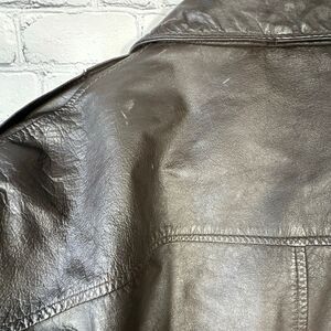 LOTS of issues due to age. I tried my best to capture all the issues with the jacket. Still a great piece. Dry cleaning may get rid of the worst of it?? 1991 American Born Army Air Force Type A-2 Leather Flight Jacket Small Brown