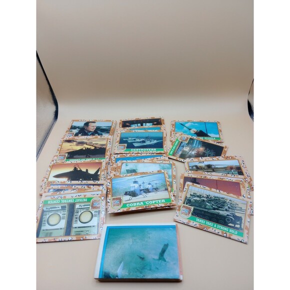 This is a complete series 1 1991 set of desert storm trading cards. There are 88 total cards and 22 stickers. I'm not a professional card grader, however in my opinion I would consider these cards to be in excellent condition. These are coming from a smoke-free home.