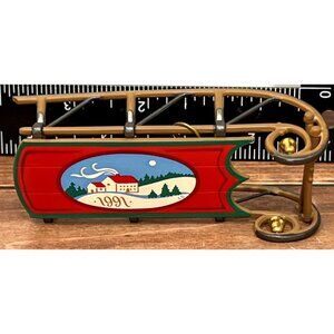 The Hallmark Keepsake Old-Fashioned Sled Ornament from 1991 captures the charm of sledding traditions. Crafted with care, it offers a nostalgic holiday touch. Presented in its original box, it makes a timeless addition to your ornament collection.