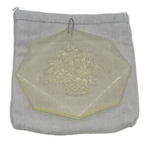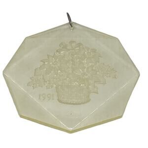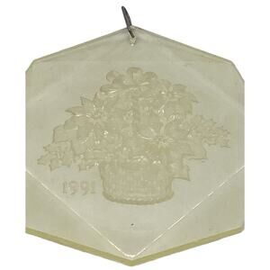 * The Ornament, the storage Bag and original box are in very good condition. The Ornament is Octagonal and shows a Basket of Poinsettia and "1991" etched into the acrylic. There is a metal loop at the top to allow for hanging on your tree.