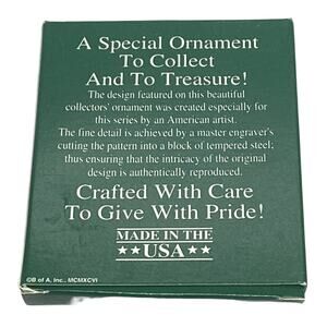 * The Box measures 4 3/4" Tall x 3 3/4" Wide x 5/8" Thick. The Ornament measures 3 1/4" Wide x 1/16" Thick.