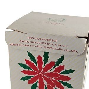 1991 handmade paper mache Christmas ornament from Mexico, featuring a white dove on red background with green and blue floral detail. Rotary International logo on reverse. Approximately 3" diameter. Comes with original box (minor wear).