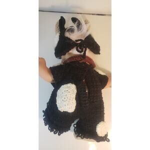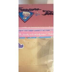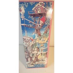 Add some nostalgic charm to your collection with this vintage 1991 Treasure Troll Tot Doll. Dressed in a cozy black-and-white cow outfit with a red scarf, this 14" vinyl doll features signature pink eyes and a wishstone bellybutton. Comes in its original opened box with signs of storage wear—perfect for collectors and fans of classic 90s toys.