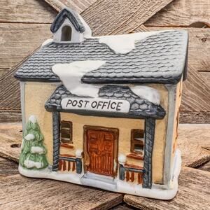 1991 Vintage Americana Porcelain Collectible Post Office, Christmas Time Building. Does not come with light cord. Due to its original age, I recommend buying an updated one from craft store to prevent any fire danger.