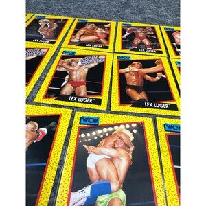 This collection of 1991 WCW Lex Luger trading cards showcases the wrestling icon in various action poses. Each card is a piece of wrestling history, highlighting Lex Luger's powerful persona and athletic prowess in the ring. Ideal for collectors or fans of professional wrestling memorabilia.