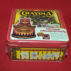 1992 Crayola Collectible Holiday Tin Sealed 64 Crayons Christmas Ornament Tin Box