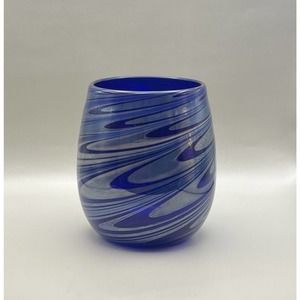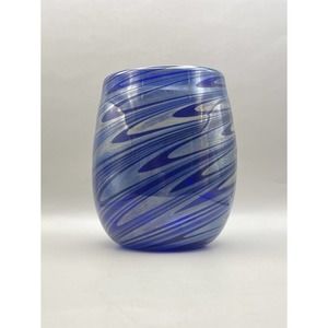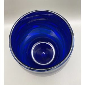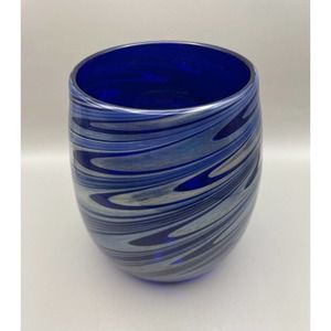 Hand Blown with Cobalt Blue Vase with Silver & a touch of Tan Swirls throughout the vase