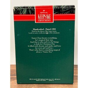 This Hallmark Keepsake Ornament from 1992 features a charming Santa Claus with a teddy bear. It embodies the magic and charm of Christmas, making it a delightful addition to any holiday decor.
