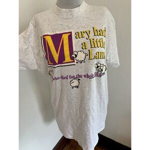 1992 Impact Product Christian Shirt Mary Had A Little Lamb Who Died VTG XL Gray