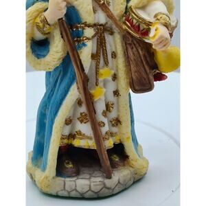 This 1992 “Star Man” from the International Santa Collection features classic Polish holiday style with blue and yellow robes, golden accents, and a star-topped staff. A detailed and colorful piece that adds festive charm to a mantel, shelf, or Christmas village display.