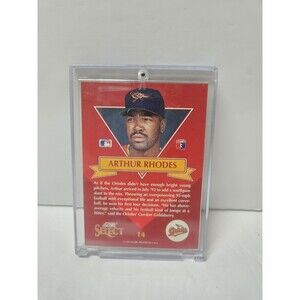 The 1992 Score Select Rookies trading card featuring Arthur Rhodes of the Baltimore Orioles is a sought-after collectible item for baseball fans. Made of card stock and manufactured by SCORE in the United States, this original sports trading card is a part of the 1992 Score set. As a rookie insert, this card showcases the MLB player in his early career, making it a valuable addition to any trading card collection. With its standard size and English language text, this vintage baseball card is a must-have for fans of the sport and collectors alike.