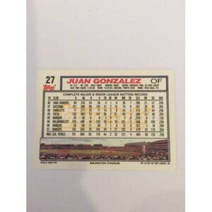 1992 Topps Juan Gonzalez IP Autograph #27....Card is Mint to Near Mint...Any questions please feel free to ask...