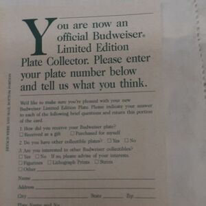 1992 U.S. Winter Olympic Team Albertville, France Anheuser-Busch plate