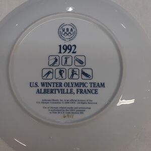 1992 U.S. Winter Olympic Team Albertville, France Anheuser-Busch plate. Anheuser-Busch, Inc. is an official licensee of the U.S. Olympic Committee. This is plate #6911. Beautiful collector plate for the sports lover. Approx. 8.5" diameter.