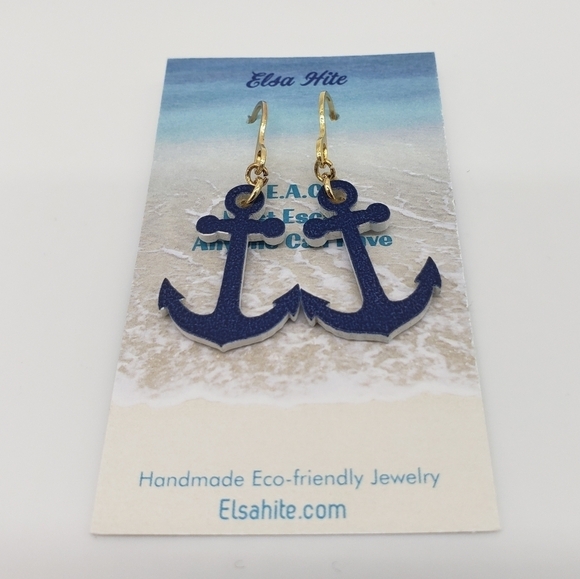 Anchor Wood Hand Painted Nautical Earrings Handmade NWT
