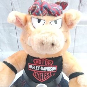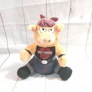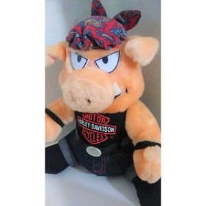 Vintage 1993 Harley Davidson Motorcycle Biker Pig 11" Stuffed Animal Plush. Condition is Used