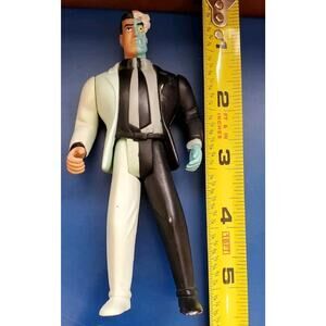 1993 Kenner DC Comics Black White 5 Inch Two-Face Action Figure Batman Flaws in played with condition. There are areas of discoloration, missing paint, and surface scratches. There is a large discoloration on back in White area and on back of White arm. Hair and black areas missing paint. See photos for details.