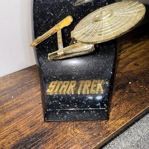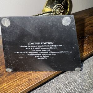 The 1993 Paramount Pictures Star Trek U.S.S. Enterprise NCC-1701 3D Sculpture is a collectible item featuring a detailed three-dimensional depiction of the iconic spaceship from the Star Trek franchise. This sculpture is a part of the Enterprise series, specifically focusing on the spacecraft known for its exploration missions in the science fiction and horror genre. Perfect for fans of Star Trek, this item embodies the spirit of adventure and discovery synonymous with the beloved franchise.