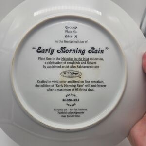1993 WL George Fine China Plate Red Bird "Early Morning Rain" 5357
