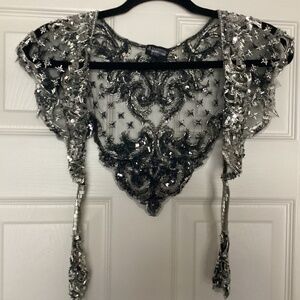 1993 vintage Sharmark silver&black beaded sequins shawl