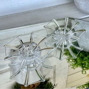 1994, SET OF 2, 24% CLEAR, LEAD CRYSTAL CANDLE HOLDERS. MADE IN ITALY. IN NEW CONDITION. 5 1/4”W X 1 1/2”H