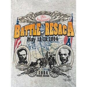 battle of resaca, distressed tee, vintage graphic, 90s style, grey oversized, single stitch, patriotic design, rare find, retro shirt, collectors item