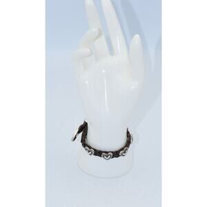 1994 Brighton Silver Brown Leather Roped Heart Braid Bandit Buckle Boho Bracelet