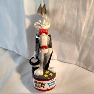 This, still in the original wrapper, Bugs Bunny bubble bath is a bit of a rare find. Bugs is standing with his top hat and in his best tails!
