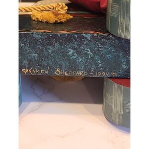 Vintage 1994 Hand Made & Hand-painted Santa Claus on a rolling Duck Sleigh | Made of Solid Wood | Figurine | Folk Art | One Of A Kind | Signed by the Artist Karen Sheppard | Excellent Used Vintage Condition | *Flaw, light signs of previous use and display | Please refer to the photos for the condition | Weight before packaging 2.11 lbs. | 9½x 12" x 4⅞" at the wheels.