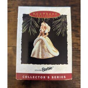 Description: QX5216 - Keepsake Ornament MINT IN BOXHoliday Barbie Series Second in Series Dated 1994 2 1/2 HArtist: Patricia AndrewsView ALL Holiday Barbie SeriesView ALL Barbie Ornaments.