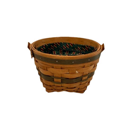 1994 Longaberger Christmas Collection Jingle Bell Green Trim Basket Plaid Liner