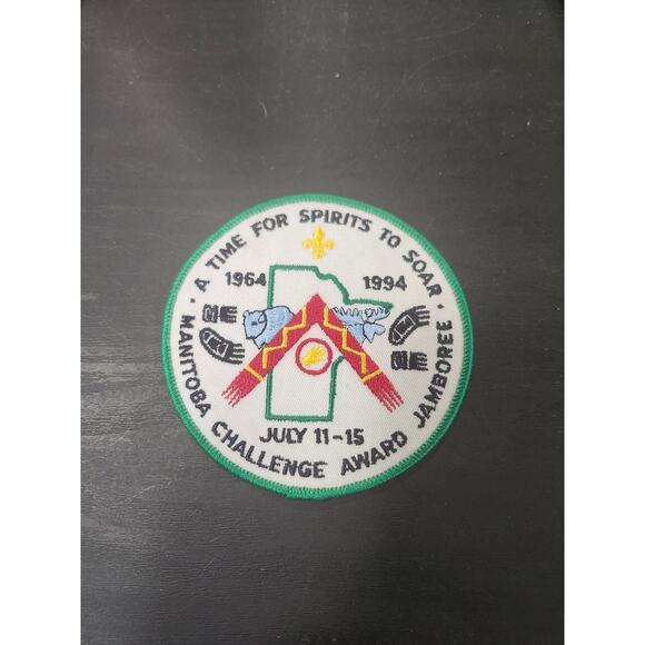 Add a piece of history to your collection with this 1994 Manitoba Jamboree Challenge Award Patch! Featuring the inspiring theme 'A Time for Spirits to Soar,' this patch is a fantastic memento for Scouts and collectors alike. It's in great condition and ready to be displayed or added to your Scouting memorabilia. Don't miss out on this unique piece!