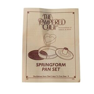 Vintage original 1994 The Pampered Chef Springform Pan Set. 4 pieces. Like new pans. Box is in terrible shape. Comes with the pamphlet.