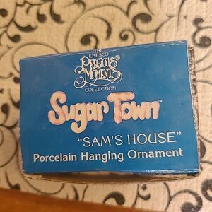 Pre-owned in good condition. Precious Moments Sugar Town Sam's House porcelain hanging ornament.