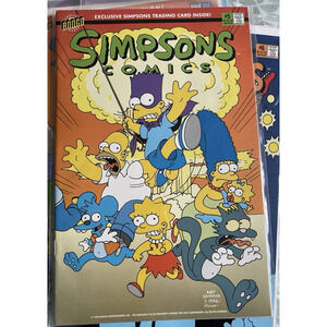 **NO CARD** The product is a vintage Simpsons Comics #5 comic book published by Bongo Comics in 1994. This single issue features characters from The Simpsons universe such as Black Belch, Homer, Maggie, Bart, and Lisa. The comic is part of the US Comics tradition and is in English language. With a modern age era, this color comic book is a first printing and comes boarded with a dust jacket, making it a collectible item for fans of the cartoon series.