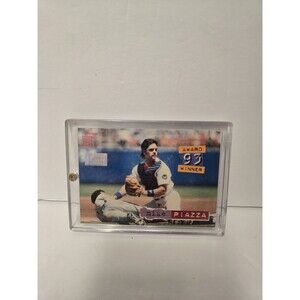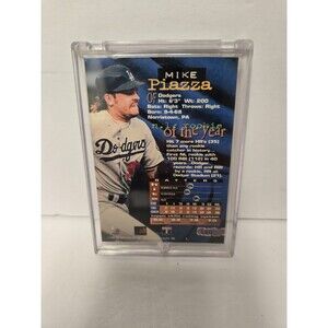 The product is a 1994 Stadium Club baseball trading card featuring Mike Piazza of the Los Angeles Dodgers, who was named Rookie of the Year in that season. This original card, manufactured by Topps, is a highly sought-after collectible for fans and collectors of baseball memorabilia. With its Rookie designation and unique card number (#140), this card captures a significant moment in Piazza's career and is a valuable addition to any sports trading card collection.
