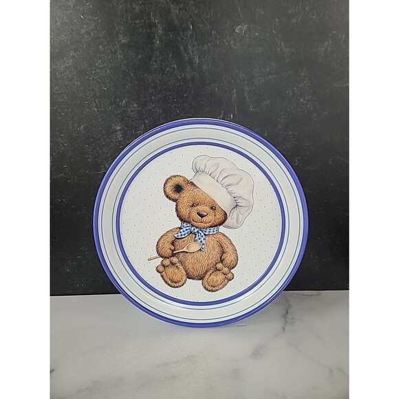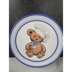 This is a vintage Sweetie Bear Bakery tin with a teddy bear in a chef's hat on it.